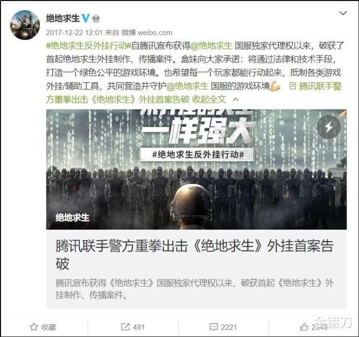 比如云服务、支付手段、防外挂、防破解以及游戏防DDOS等技术。知名游戏内容创作者“国电武术馆馆长”在一个视频中曾提到,腾讯的“反外挂”技术,或许是促使《绝地求生》开发商蓝洞接受腾讯投资的一大诱因。