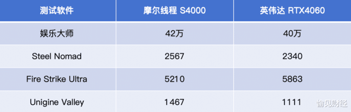近两年摩尔集中精力在搞AI智算卡和千卡万卡中心,同时,消费级显卡产品线却迟迟没有更新。S80至今已发布两年多,每个月还在更新驱动,支持DirectX11,性能和适配有提升,号称“养成型国产显卡”。所以很早之前就有S90的呼声,但貌似摩尔充耳不闻。一些灵通的渠道已侧面证实,两年前的AI智算卡S4000在图形跑分上就超过了英伟达4060。自媒体“差评”不知从哪搞来了一块S4000做了实测,跑分如图所示自己看。这说明摩尔不是没有迭代消费显卡的能力,而是一种商业选择。既然新GPU架构要发了,摩尔在MDC上会不会推出S90甚至S100?20号答案揭晓。