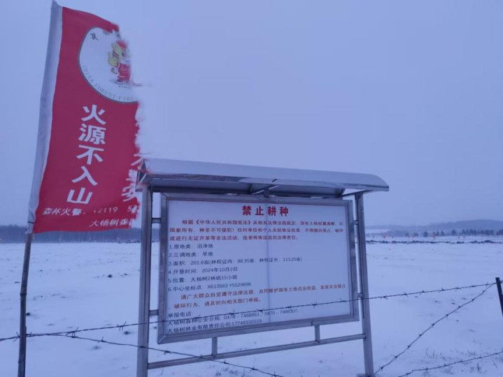 行驶在林区公路上,经常会有被一米多高的铁丝网围起来的“违法耕地”,地头插着警示红旗,旁边立上“禁止耕种”的牌子,成为当地林业公司管护地块。