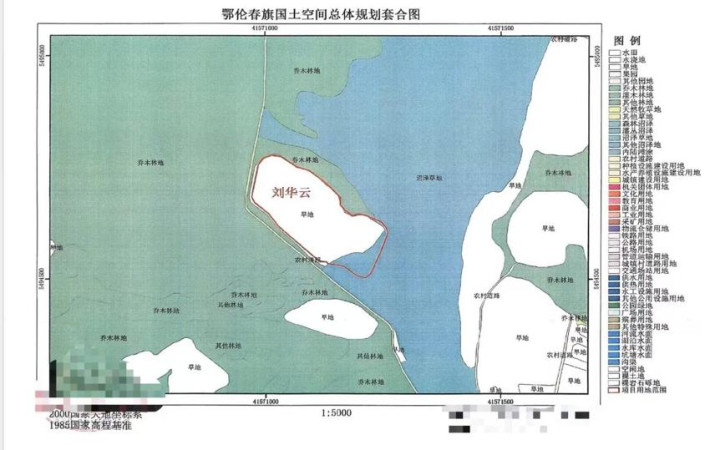 鄂伦春旗国土空间总体规划套合图中,刘华云的涉案地块大部分为旱地。受访者供图