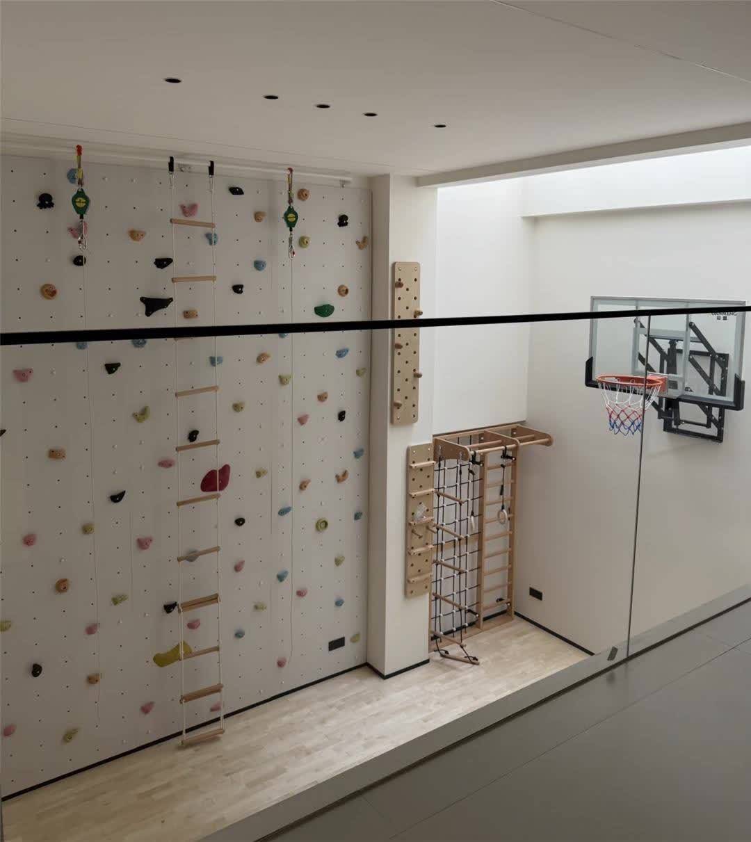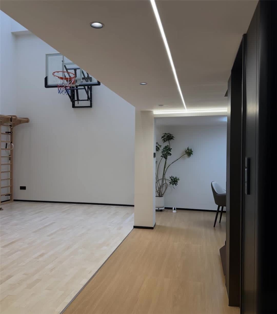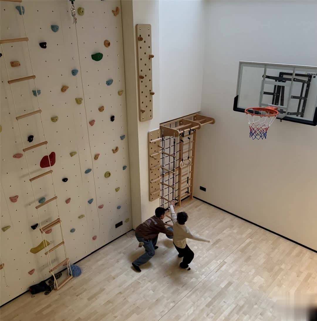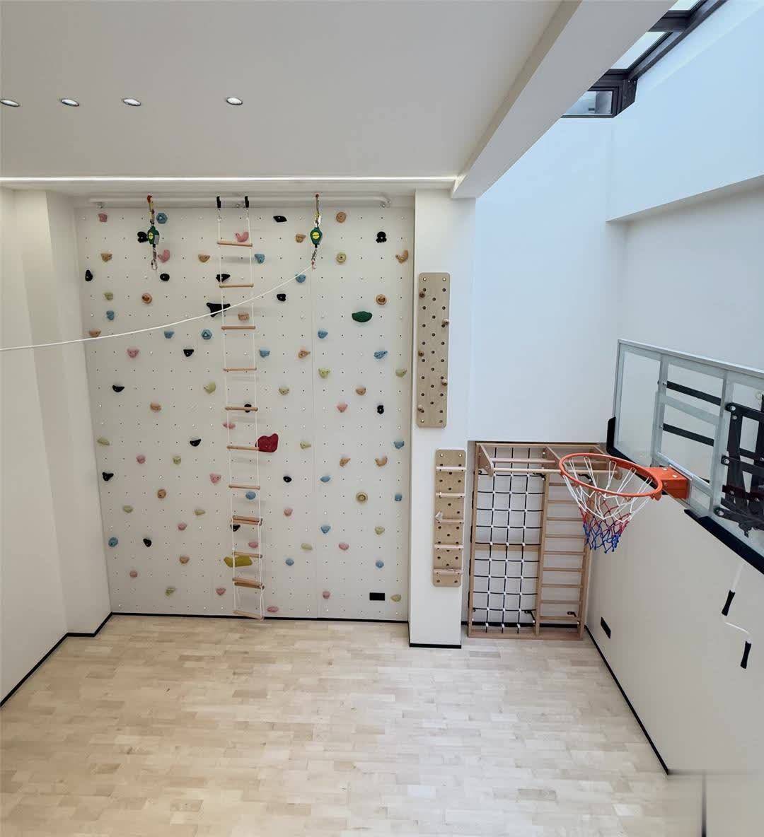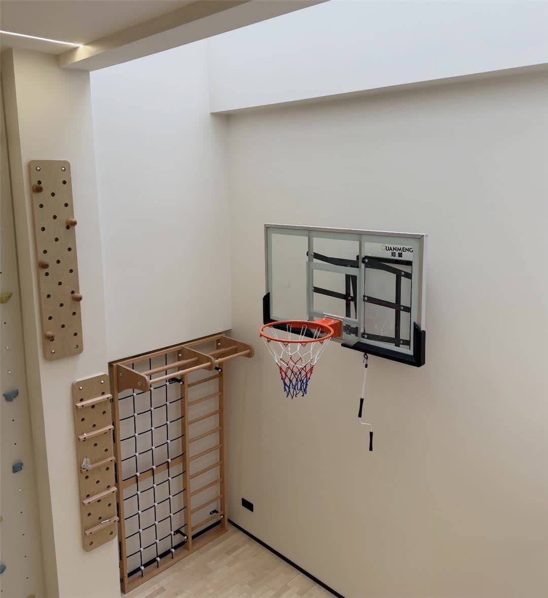 最关键的是,这家人在地下室做了攀岩墙、篮球框、麻将桌,还保留了一个较为宽敞的活动区域,可以打球健身搓麻,简直是大人和孩子的共同乐园!