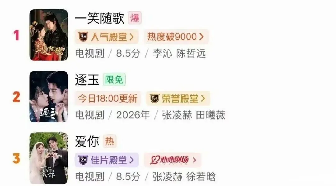 陈哲远、李沁主演的《一笑随歌》,开播整整169天后,靠着超40%的热度涨幅强势逆袭,不仅霸占榜单高位,热度更是直接反超当下热播的《逐玉》,成了首部播出半年后还能逆风翻盘的作品。