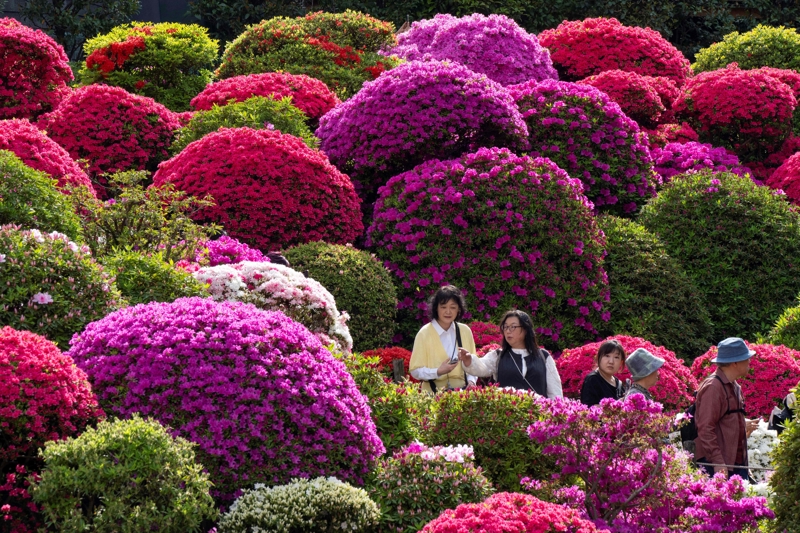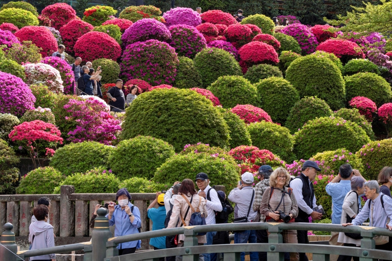 4月14日,游客在日本东京根津神社观赏春花。 新华社/法新
