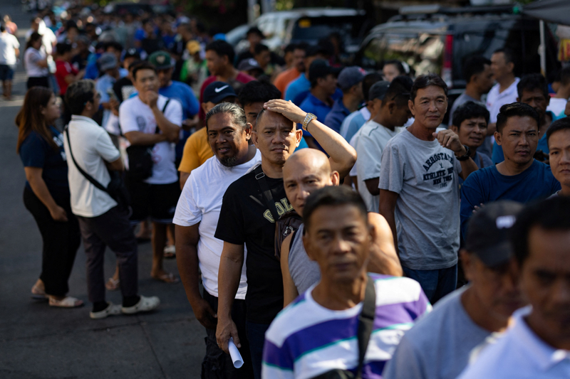4月15日,在菲律宾马尼拉,吉普尼司机排队领取政府补贴。 新华社/路透