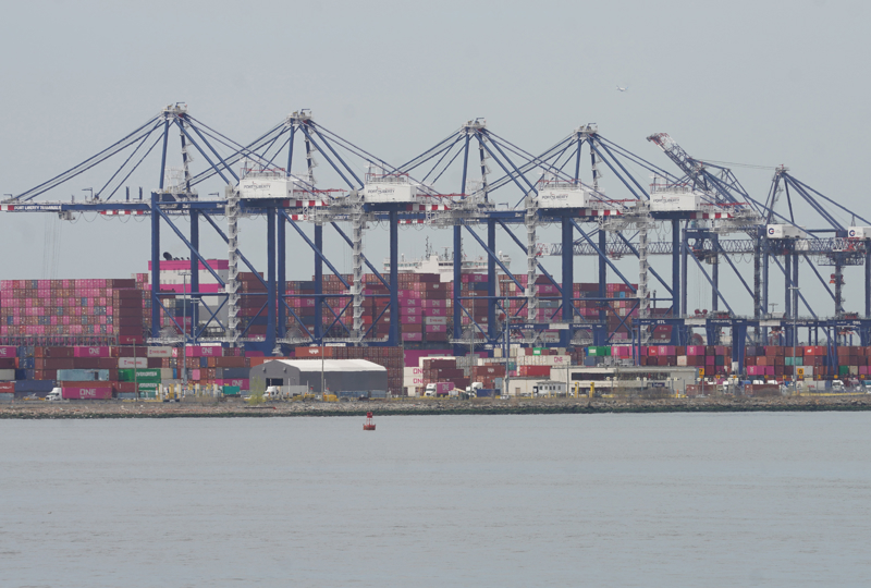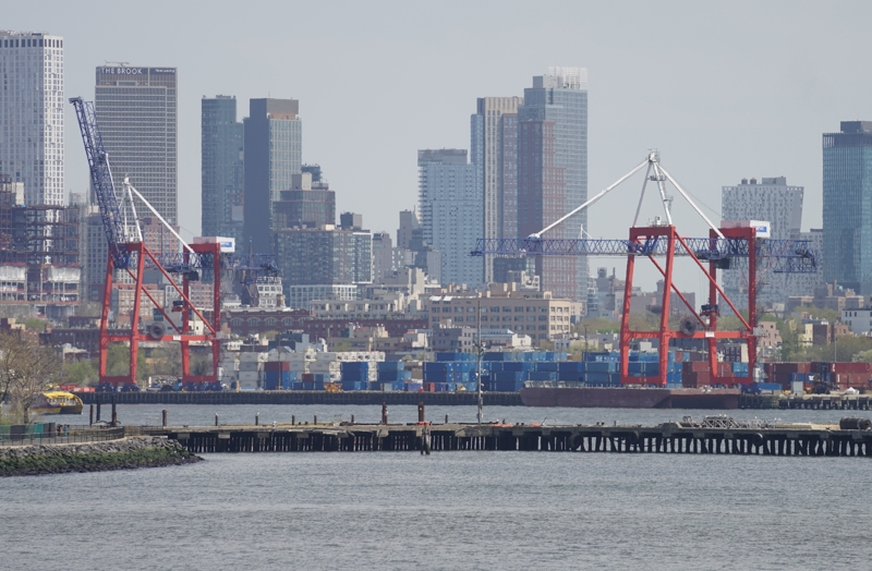 这是4月15日在美国纽约拍摄的纽约和新泽西港一个集装箱码头。纽约和新泽西港是美国东北部最大的贸易和货物进出口中心。 新华社记者 张凤国 摄